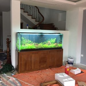 Bên trong bể cá cảnh được thả nhiều loài cá với kích thước và màu sắc khác nhau, bơi lội tung tăng, bên dưới là lớp nền trồng nhiều loại cây thủy sinh kết hợp bức tranh vẽ và hệ thống chiếu sáng lung linh tạo nên một bức tranh thiên nhiên sống động trong không gian ngôi nhà. Đây hẳn là nơi thư giãn giảm căng thẳng mệt mỏi hữu ích sau một ngày làm việc mệt nhọc. Còn gì tuyệt vời hơn khi cả gia đình ngồi nhâm nhi tách trà nóng và ngắm nhìn khung cảnh thiên nhiên thu nhỏ trong chiếc bể thủy sinh nhà mình.