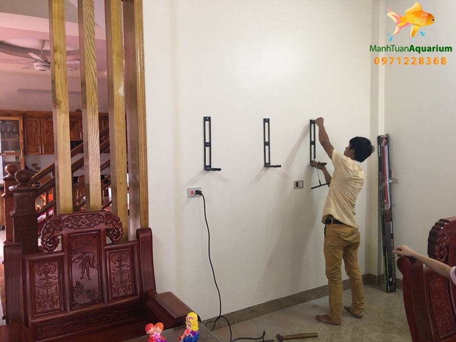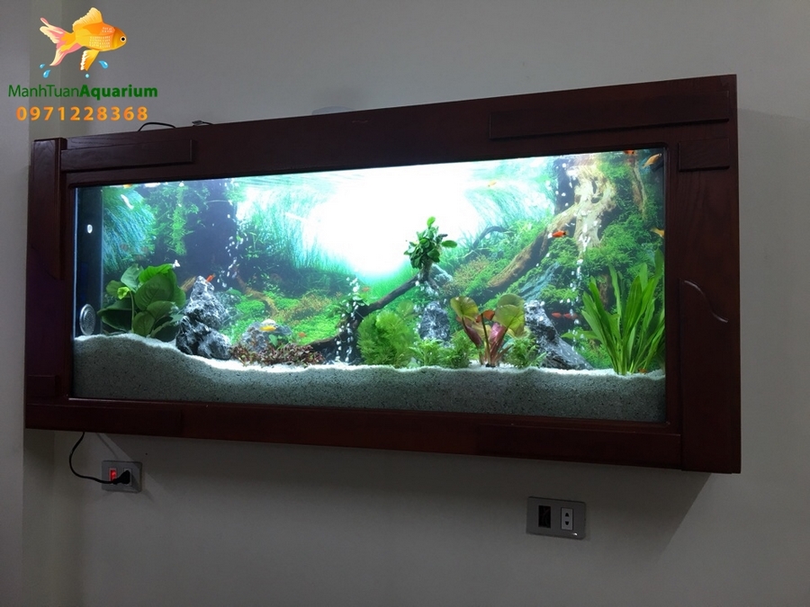 Bể được lắp đặt cẩn thận tỉ mỉ với đội ngũ nhân viên chuyên nghiệp. Bể có kích thước phù hợp với không gian ngôi nhà bạn. Ví dụ với không gian nhà anh Hải, anh đã được nhân viên tư vấn và chọn được một bể treo tường hợp lý với không gian phòng nhà mình
