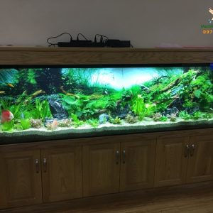 Bể gồm có hệ thống lọc ngoài DF1300 và đèn T5HO 1m2, ngoài ra có 2 máng chuyên nuôi cây giúp cho các cây thủy sinh trong bể luôn xanh tốt.
